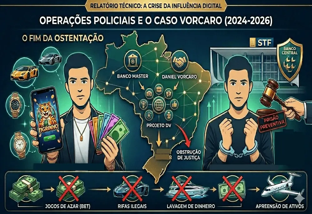 Desde 2024, a Polícia Federal e Polícias Civis de vários Estados vem travando uma uma ofensiva sem precedentes das forças de segurança contra criadores de conteúdo. A atuação deixou de focar em crimes individuais para desarticular organizações criminosas que utilizam a audiência digital como ferramenta de fraude.